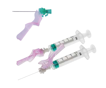 Safety needle with unique BD SmartSlip Technology incorporates a connector clip onto the hub to enable safe use with Luer-slip syringes. Recommended for intramuscular injections.